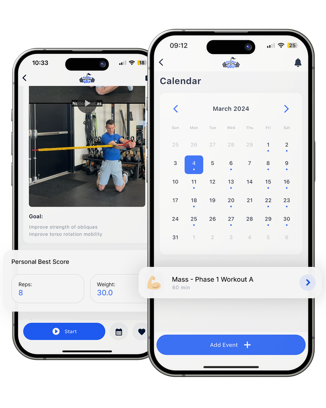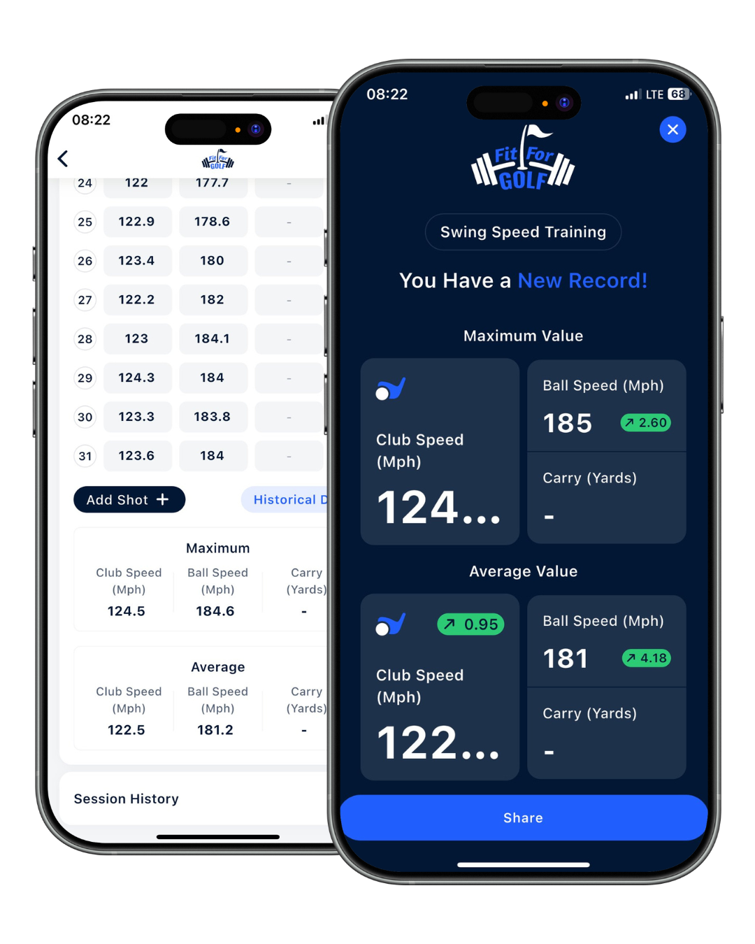 Combine specific workouts & swing speed training on the Fit For Golf App. You’re training for more speed, so track your progress! All you need is your driver & a radar.