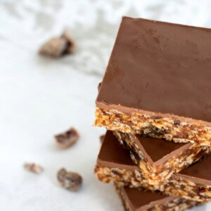 Finished with a thick layer of milk chocolate on top, it’s a simple, quick tray bake that’s easy to make and even easier to slice up and share.