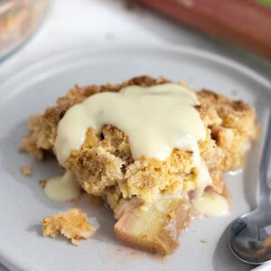 Gluten-free: The crumble mixture of this recipe does call for flour, however, swapping to a gluten-free self-raising flour should work fine in this recipe to make it a gluten-free Rhubarb Crumble.