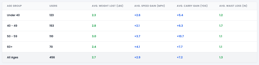 Over time, your driving distance, ball striking, and overall athleticism will improve.